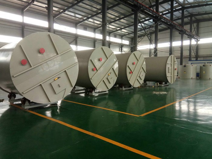 4、采用鋼制模具纏繞脫模制作罐體,整體好、自身應(yīng)力小、抗沖擊性能強(qiáng)、拉伸強(qiáng)度高,而且內(nèi)表面光滑無氣孔。